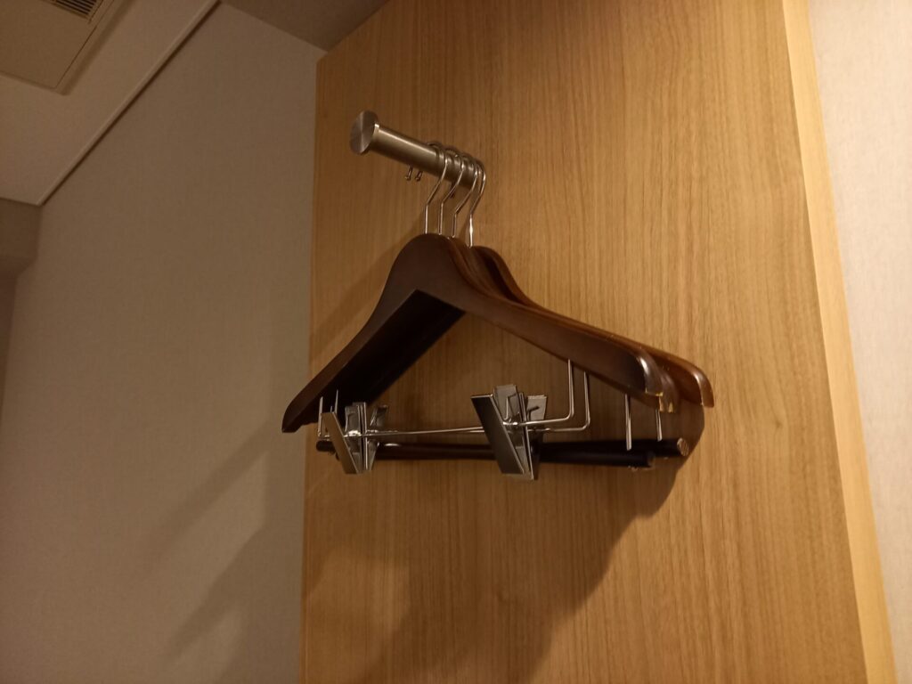 クローゼットはありませんが、壁面にハンガーがあります。