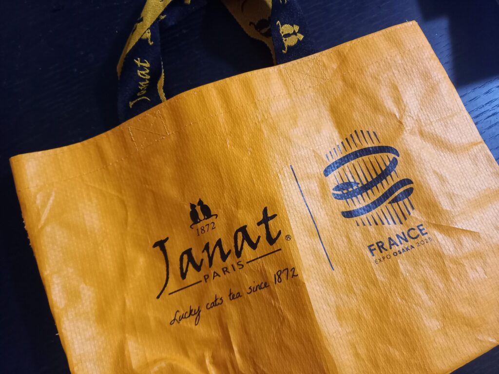 ⇓こちらはフランスパビリオンのパン屋さんで購入したパンセットともらったエコバッグ!