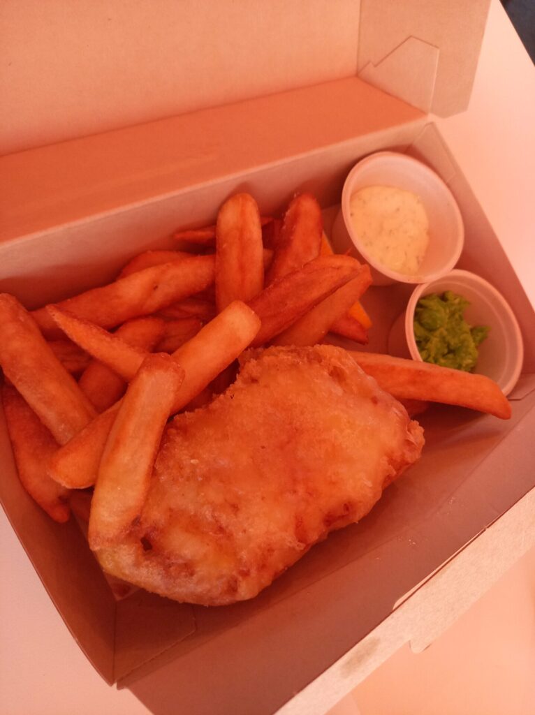 その後は、またイギリスパビリオンへ行ってフィッシュアンドチップスとアイスレモンティーをテイクアウト!