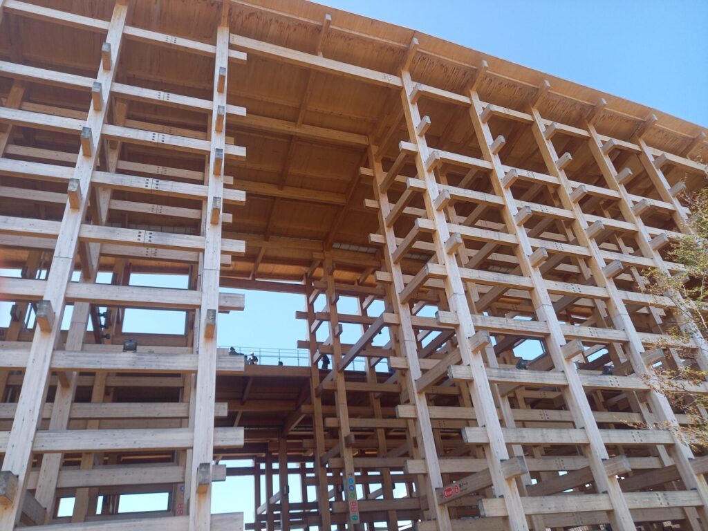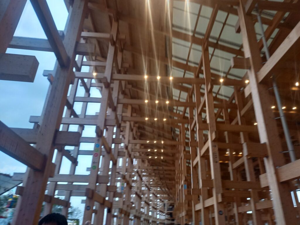 その後パビリオン内のお店でお昼ご飯をテイクアウトして大屋根リングの下で食べました。