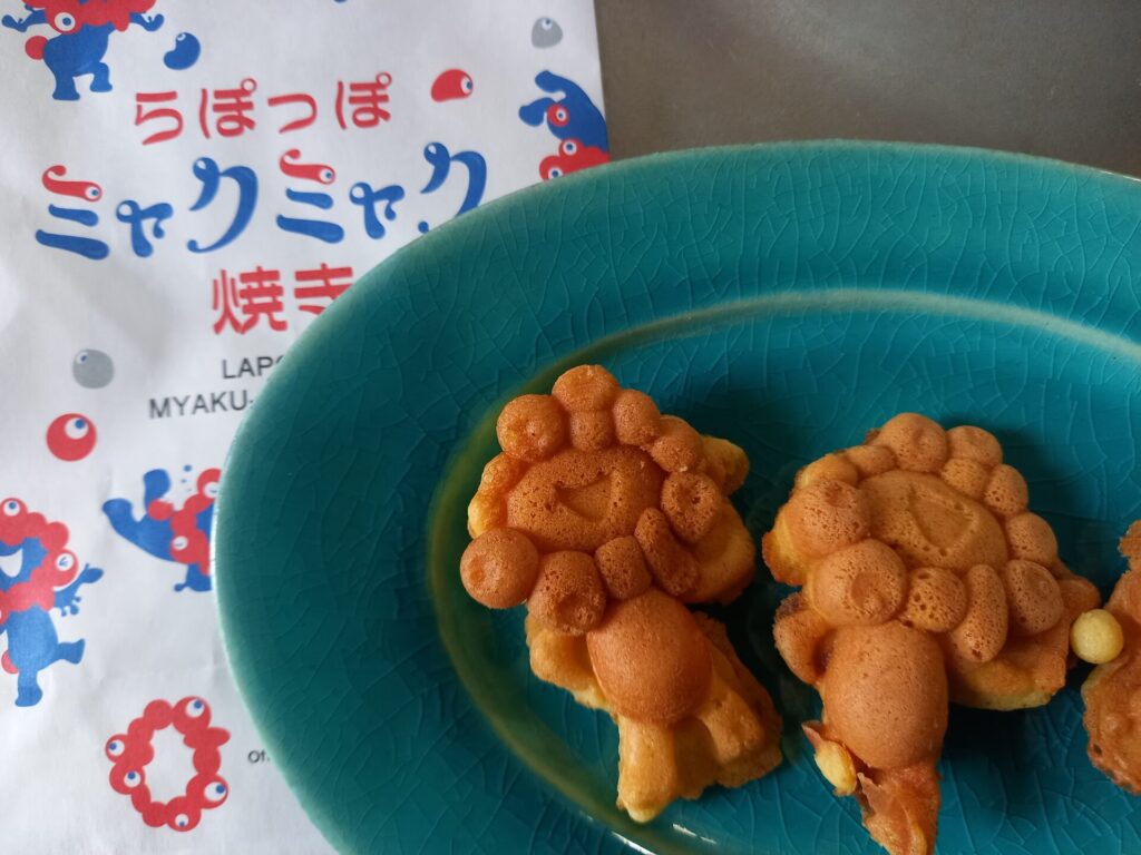 その後、西ゲート方面迄あるいて、らぽっぽのミャクミャク焼きをお土産に購入しました。