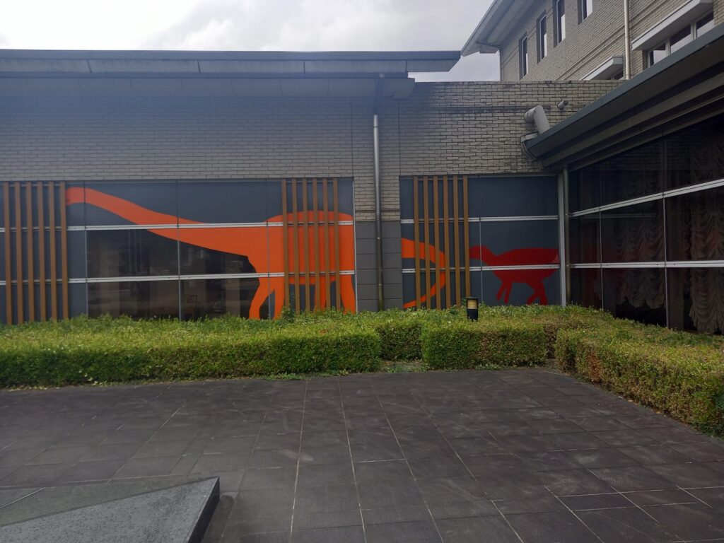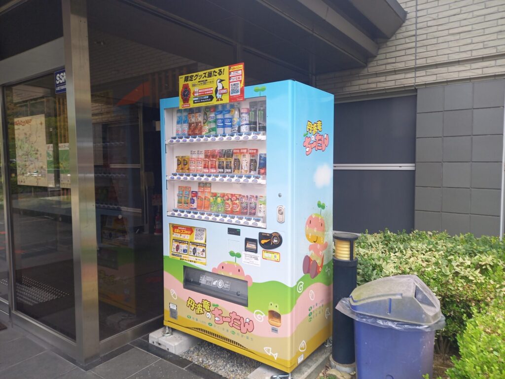 せっかく来たのでちーたんの館デザインの自販機を眺めたり、壁面の恐竜を外から眺めて見たりしました。