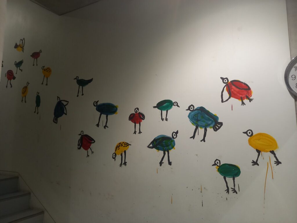 館内の壁面に書かれた鳥の絵がとても可愛くて、これを見たくて階段を上ったり下りたりしました。