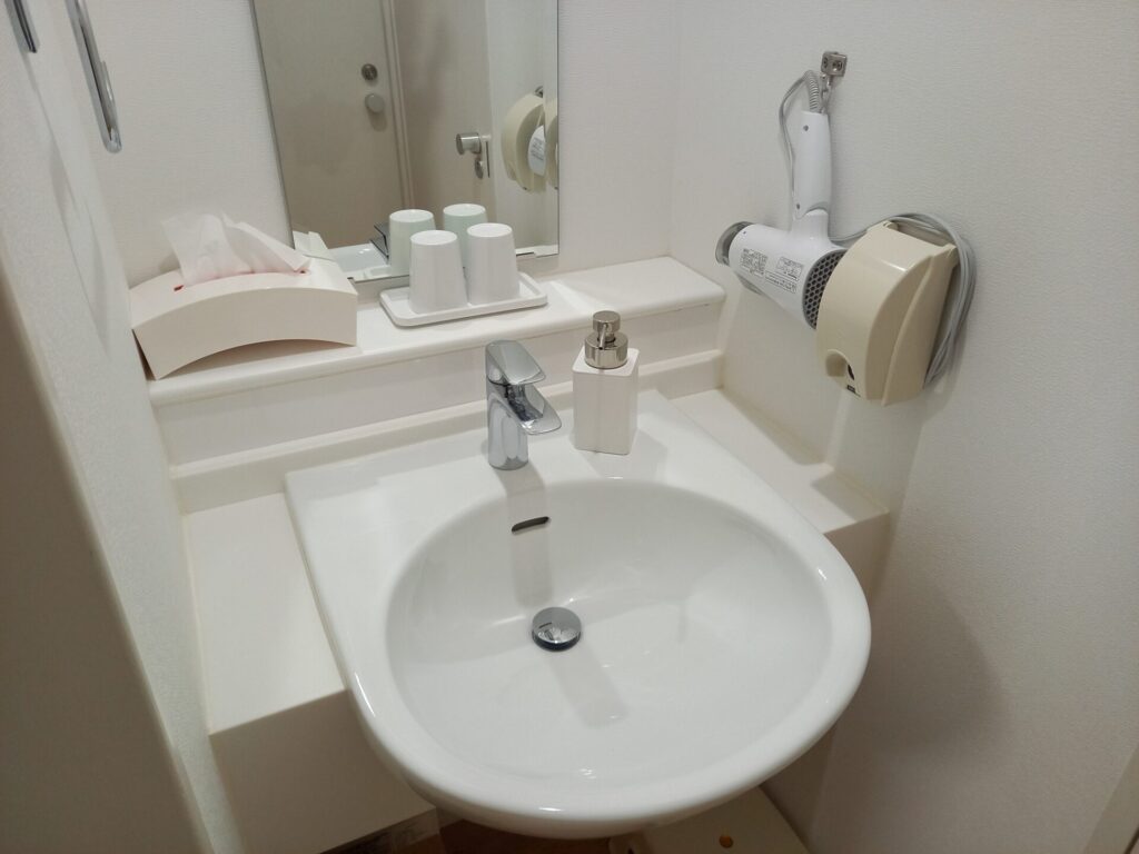 脱衣スペースには、洗面もあってドライヤーもあります。
