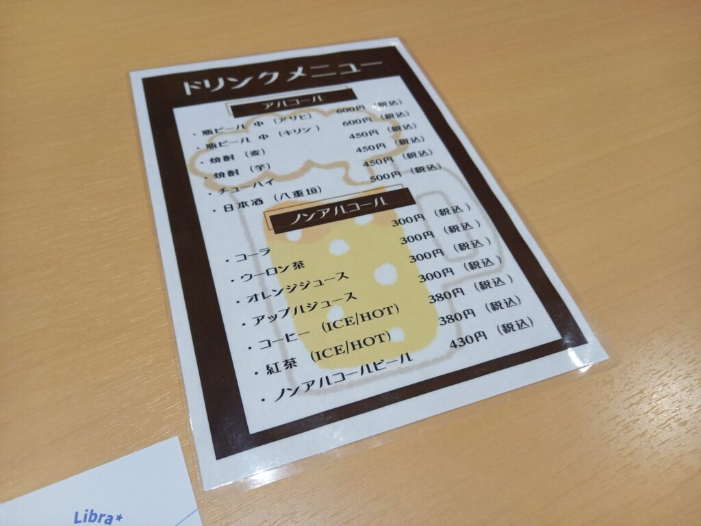 ドリンクメニューもあり、レストラン内ではアルコールを飲むこともできました。