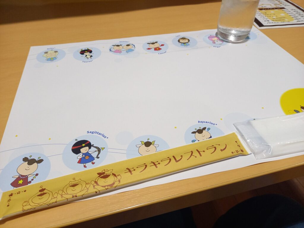 テーブルに部屋番号の札が置いてあるので、自分の客室の番号のテーブルに座ります。