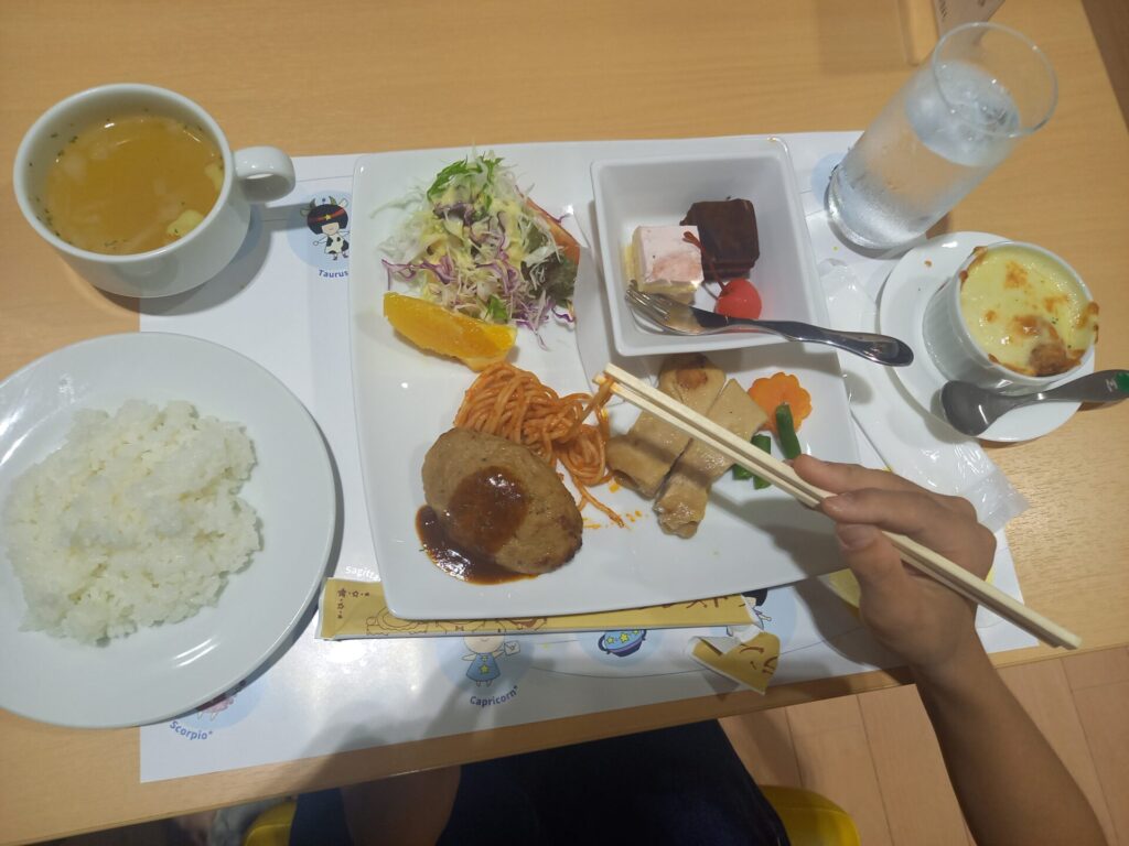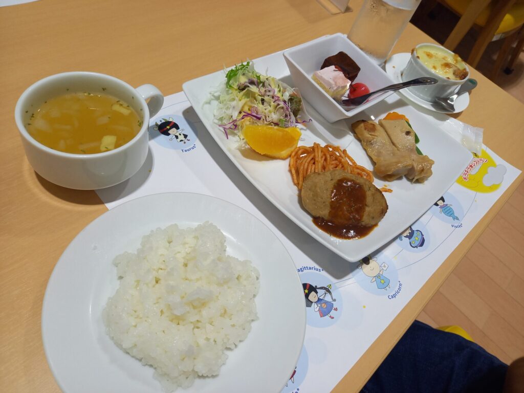 メニューは、子ども用も大人用も何種類か選べましたが旅行中に沢山食べるかもしれなかったので控えめメニューを選びました。