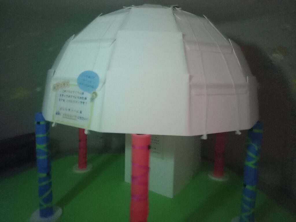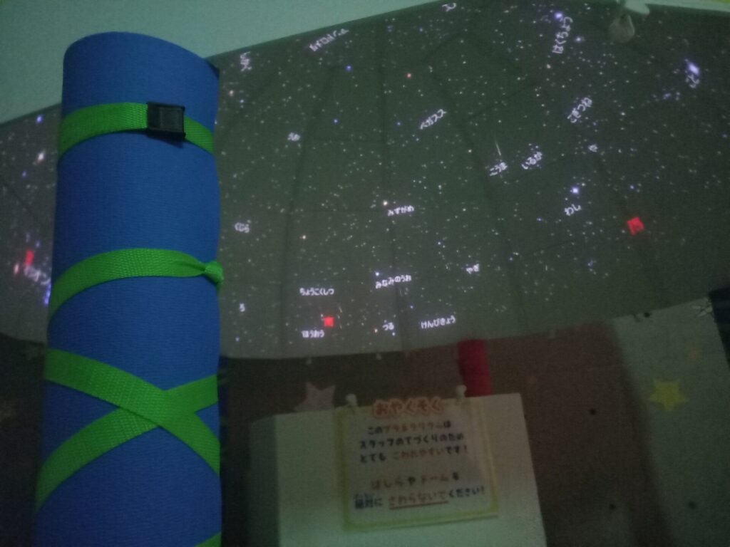 手作りのプラネタリウムもあって、中は投影されていました。