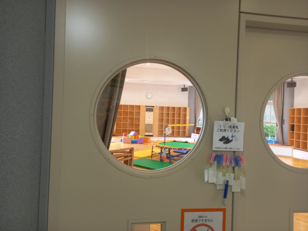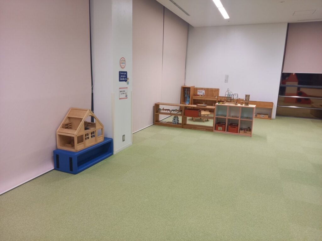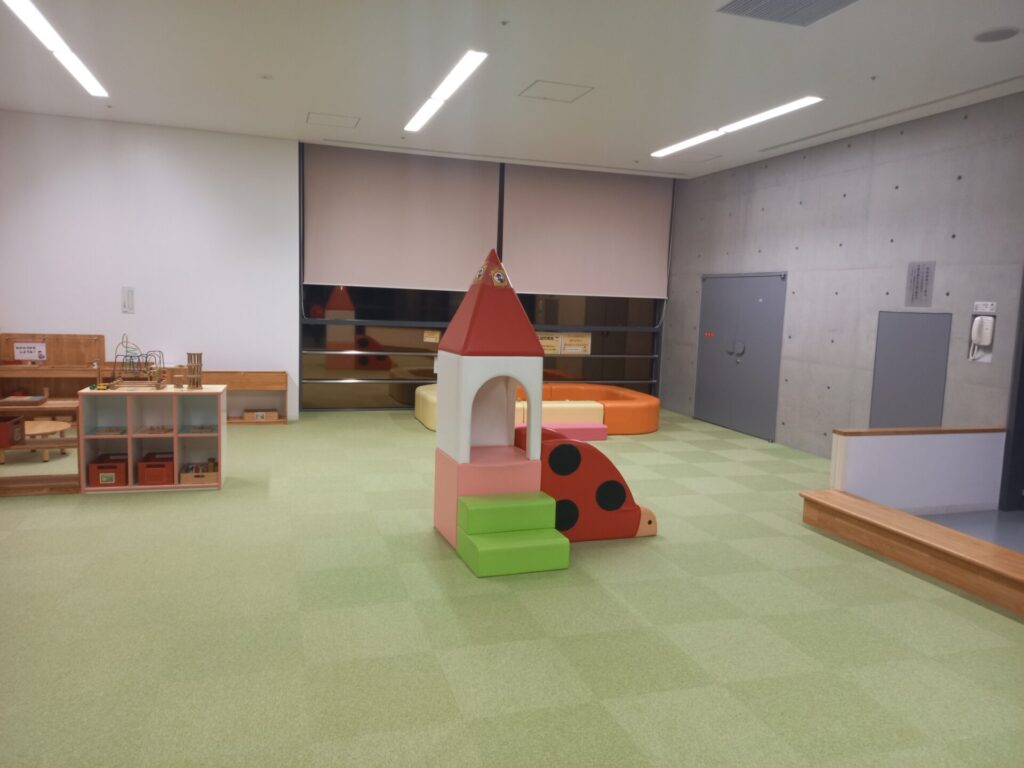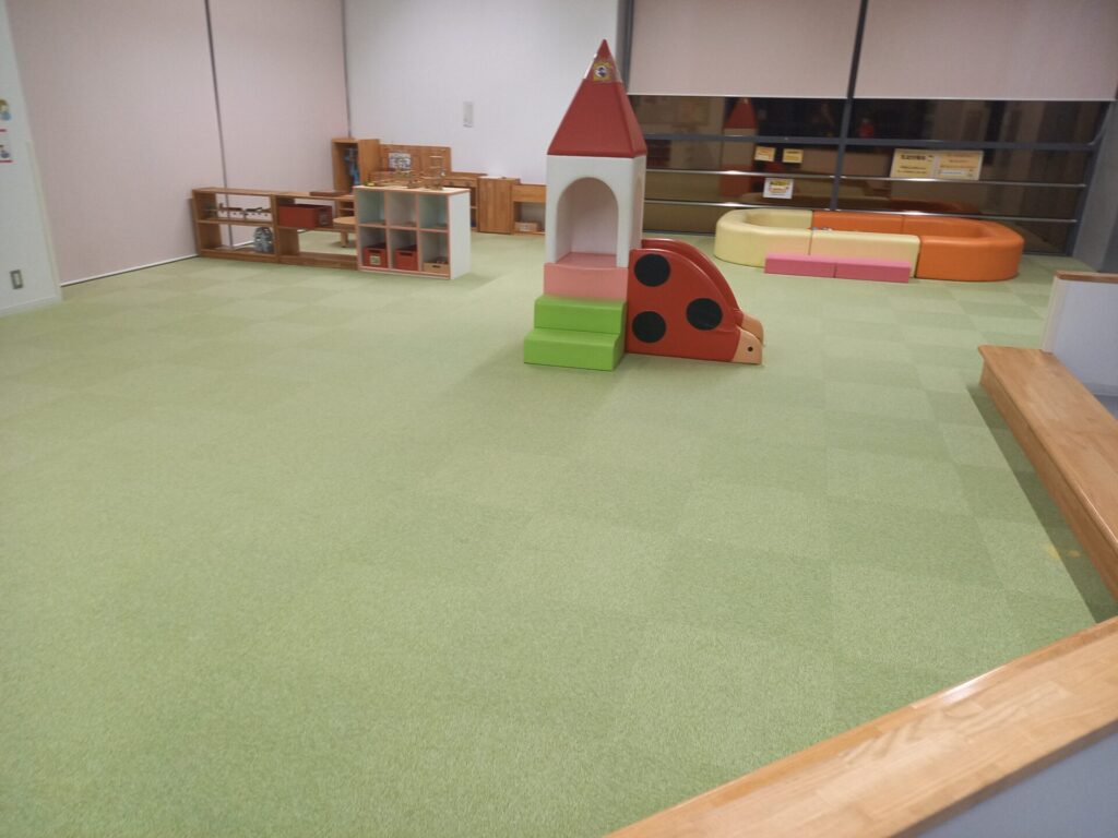 ここではトランポリンや大きな積み木など体を動かせる遊具のある広いホールでした。