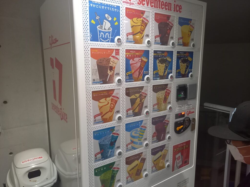 アイスの自販機でアイスを食べました。
