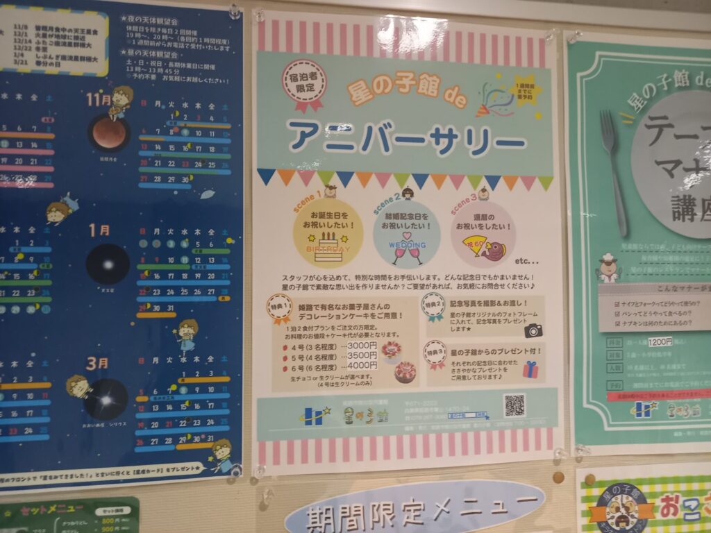 星空観察の後は、21時まで館内の施設を利用できました。