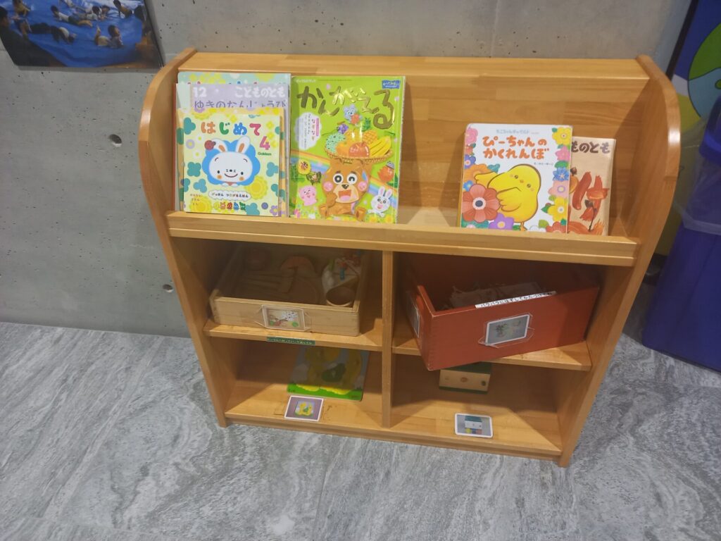 フリースペースには、ベビーベッドや絵本もあります。