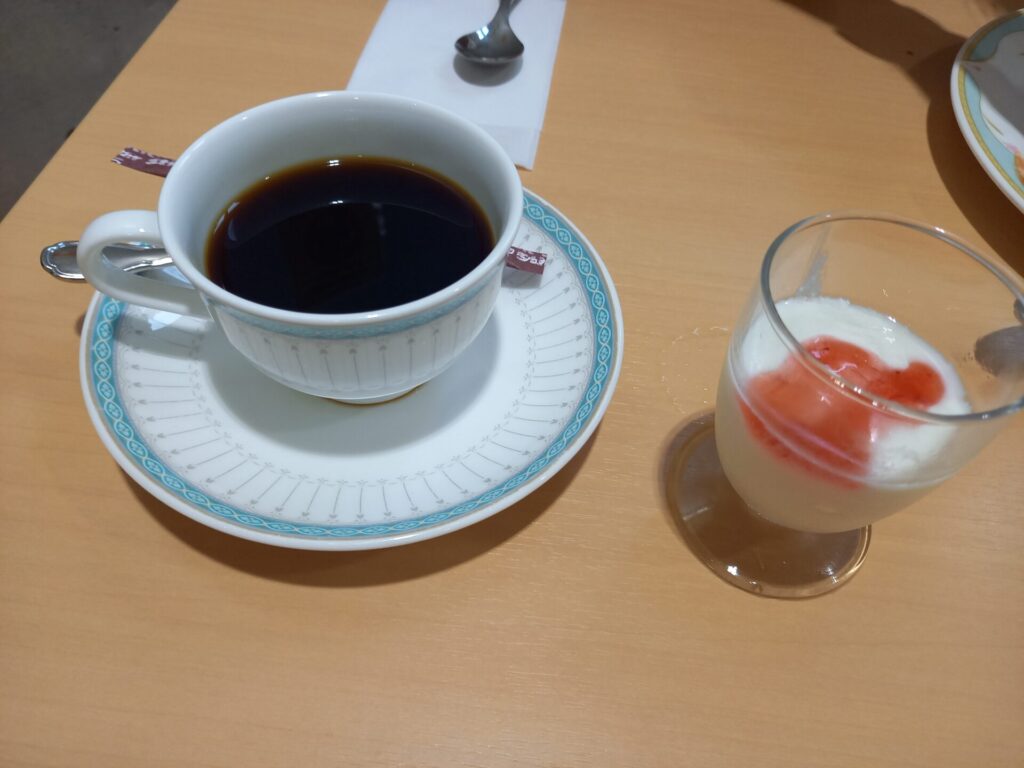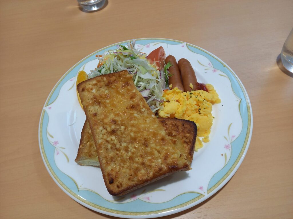 洋食は神戸モーニングで有名なアーモンドバタートーストで、ドリンクも1杯無料で付きました。
