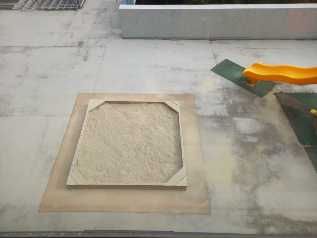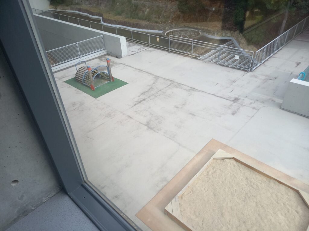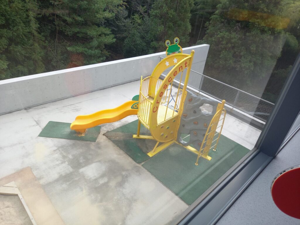 外には、小さなアスレチックや砂場もあります。