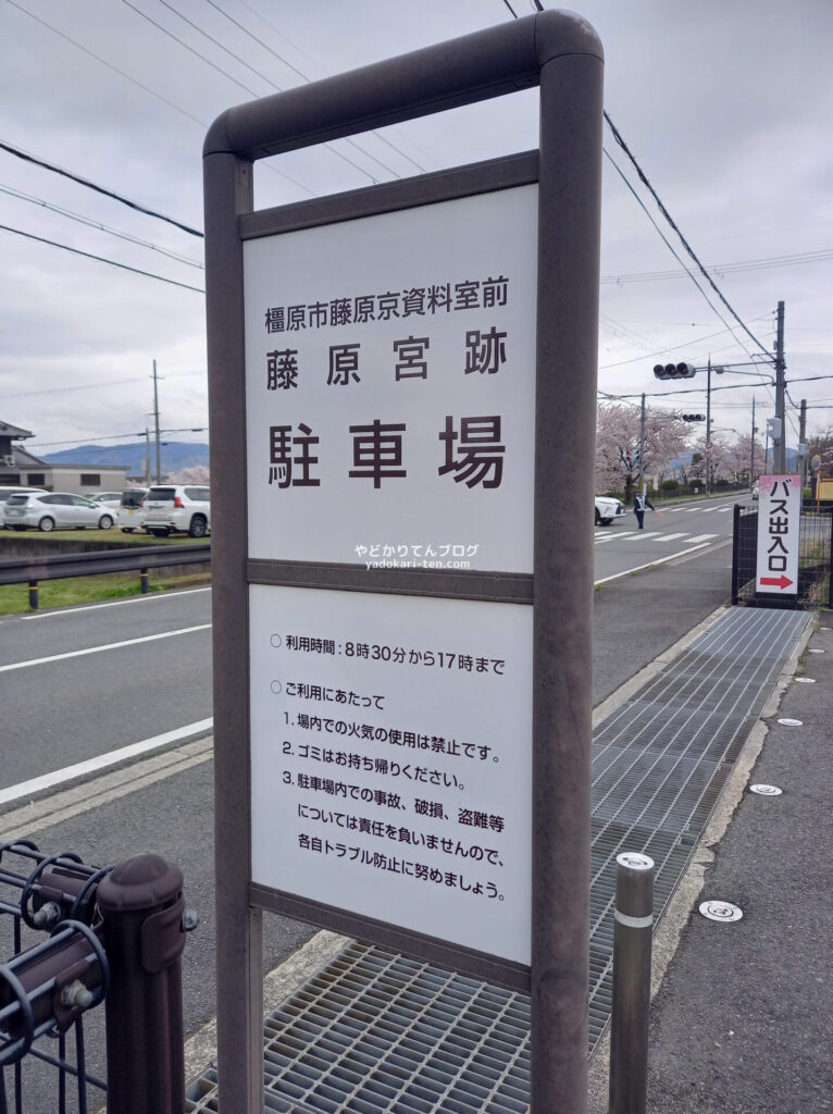 橿原市藤原京資料室前が、藤原宮跡駐車場として利用できます。(30台分)
