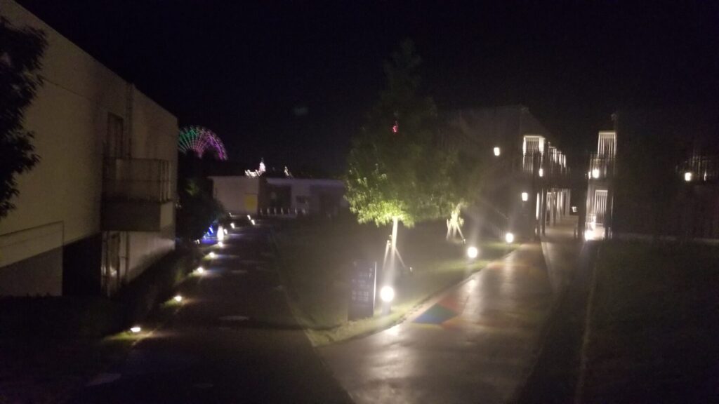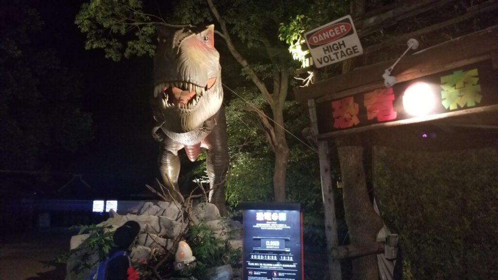 夜の恐竜を眺めながら、宿泊者専用ゲートからホテルへ戻りました。