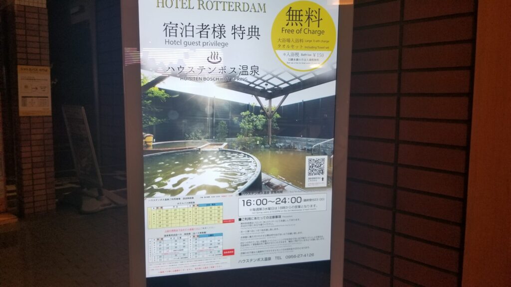 ホテルロッテルダム宿泊者は、温泉を無料で利用できます。