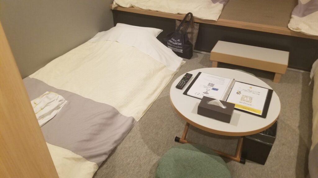 小上りのようになっていて、上の段と下の段に4つのお布団が敷かれていました。