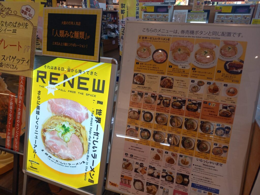 人類みな麺類という大阪の人気ラーメン店の系列店をSAで発見しました!