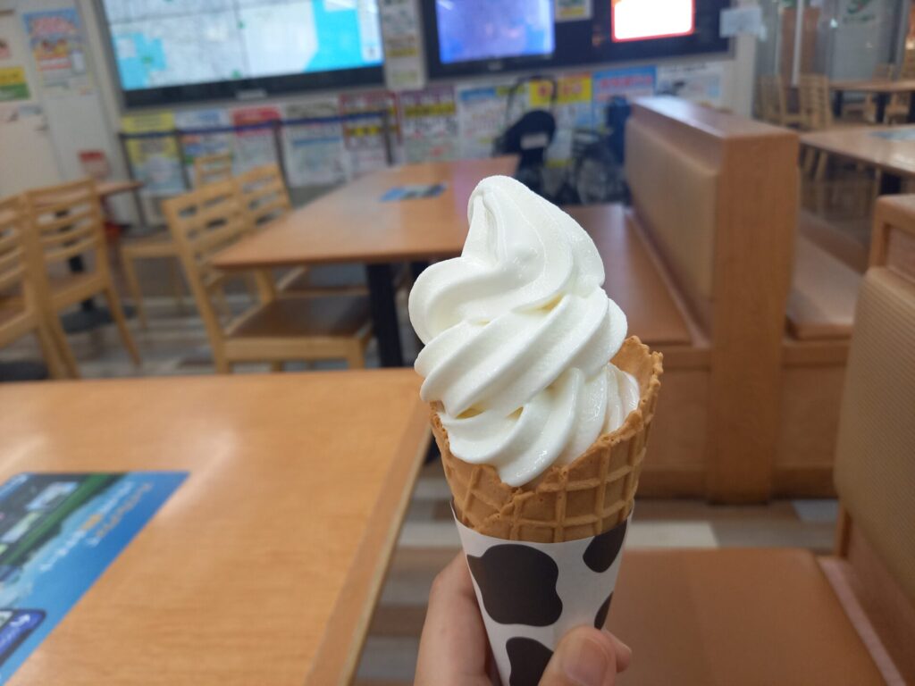 この日だけなのか分かりませんが、食事をしたときに割引券をもらえたのでソフトクリームも食べました。
