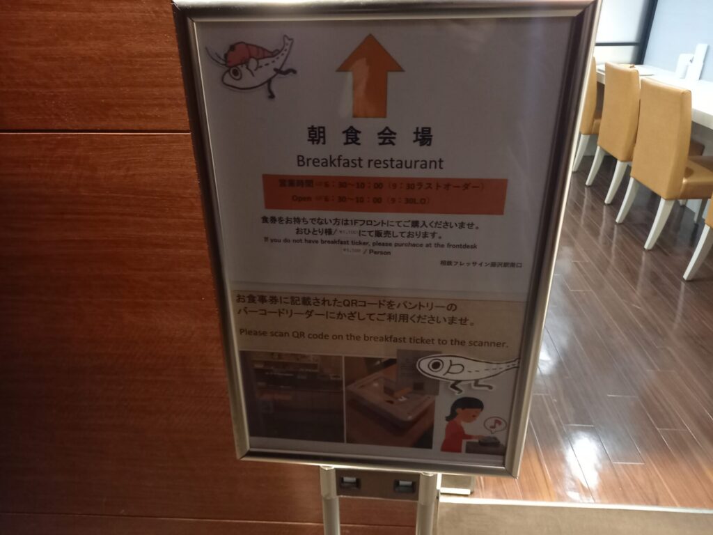 朝食付きプランにしなくても、チェックインの時に申し込むことができます。