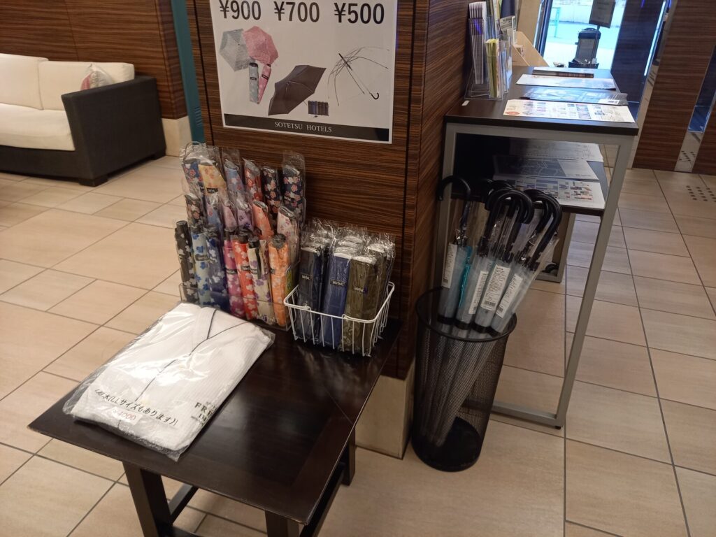 この日は雨だったのですが、フロントで折り畳みの傘やビニール傘が販売されていました。