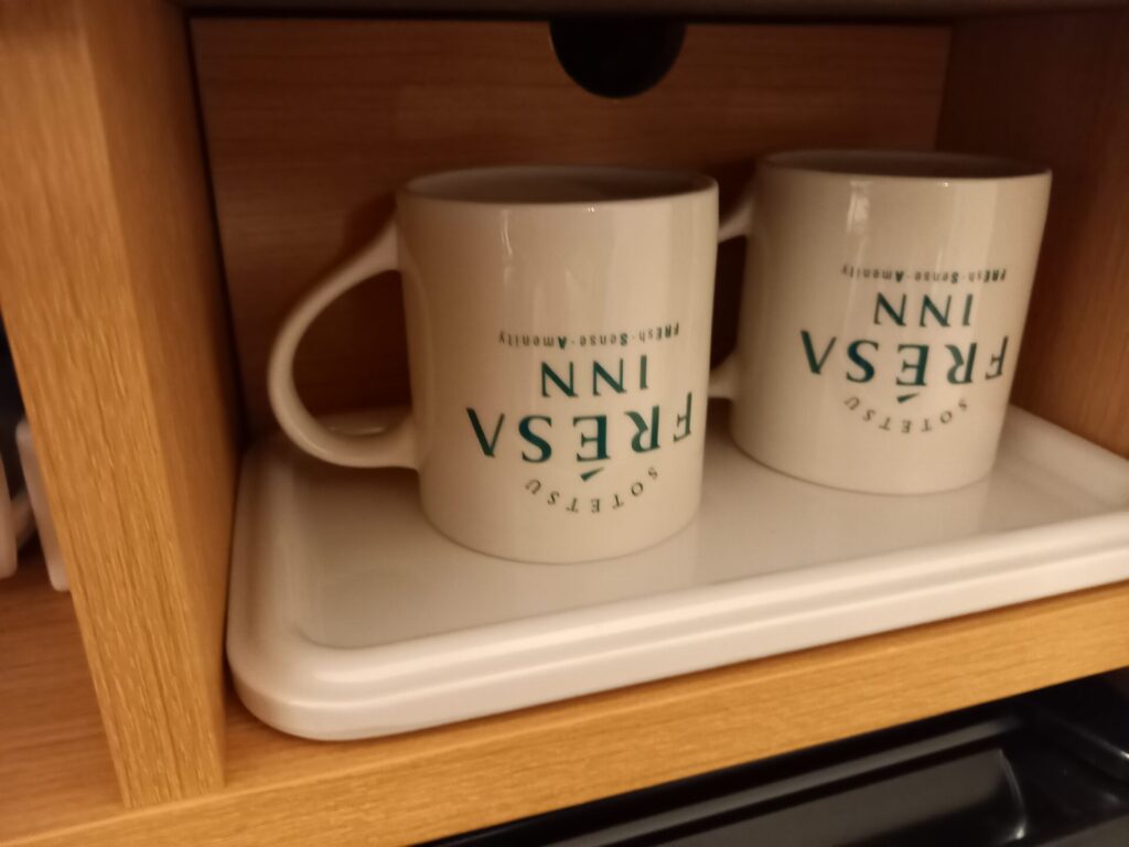 お茶などはフリーアメニティですが、コップは客室にあります。