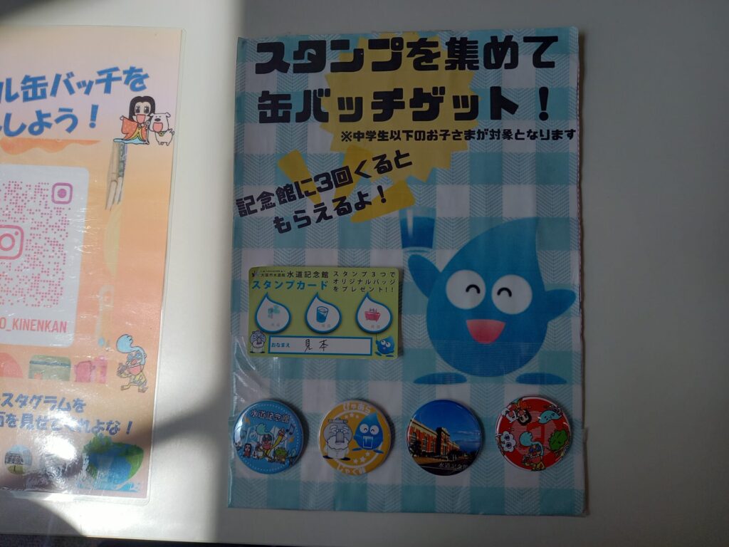 水道記念館では、3回訪問すると缶バッチがもらえます。