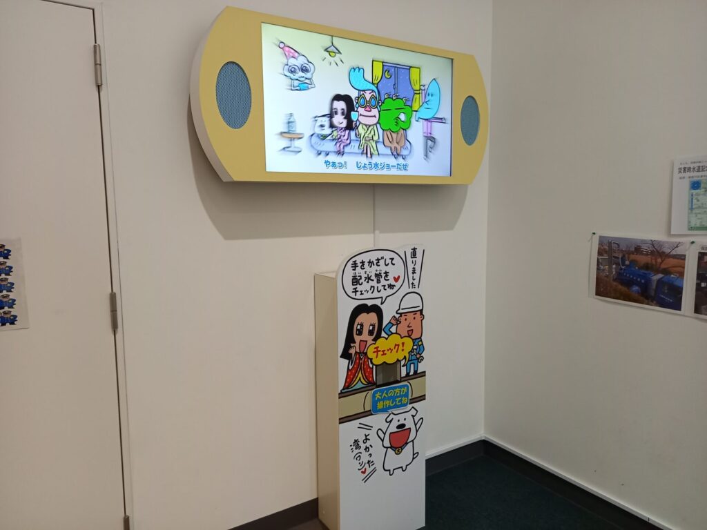 ところどころにじょう水ジョーが説明してくれる映像ブースもあるのでとても分かりやすい展示内容です。