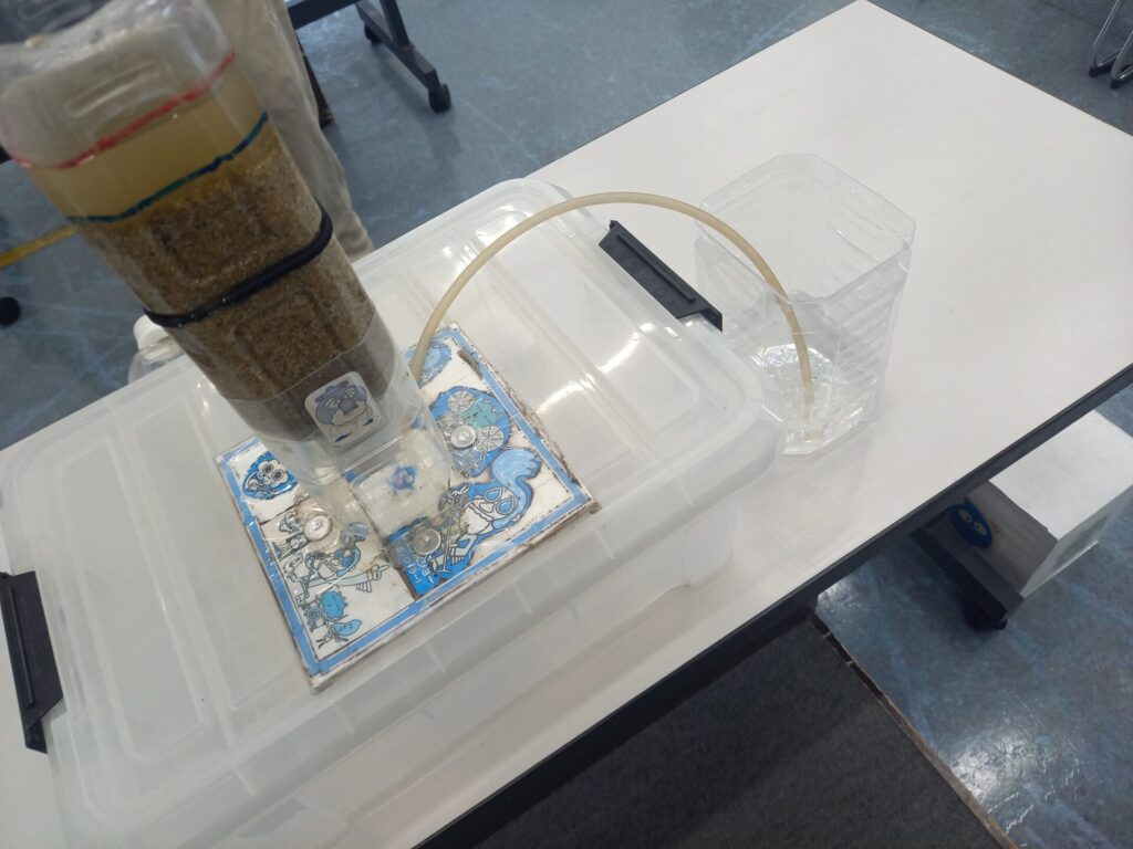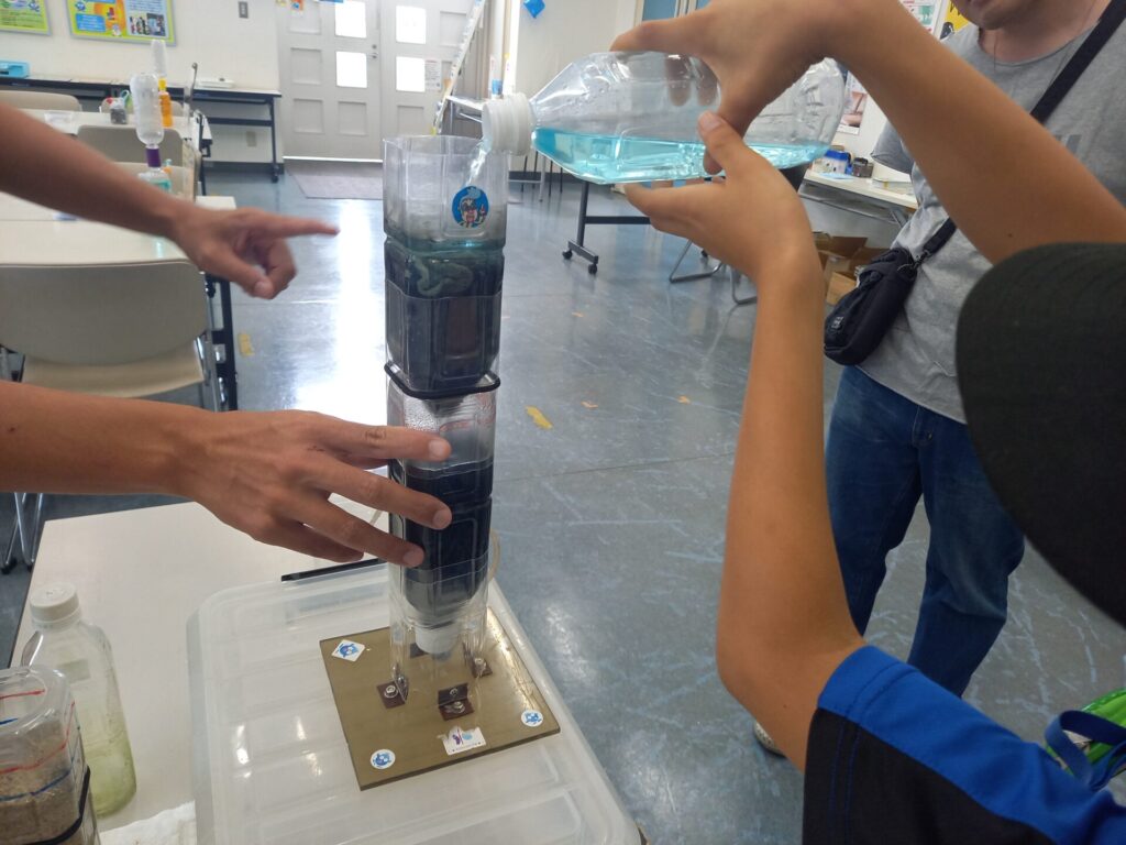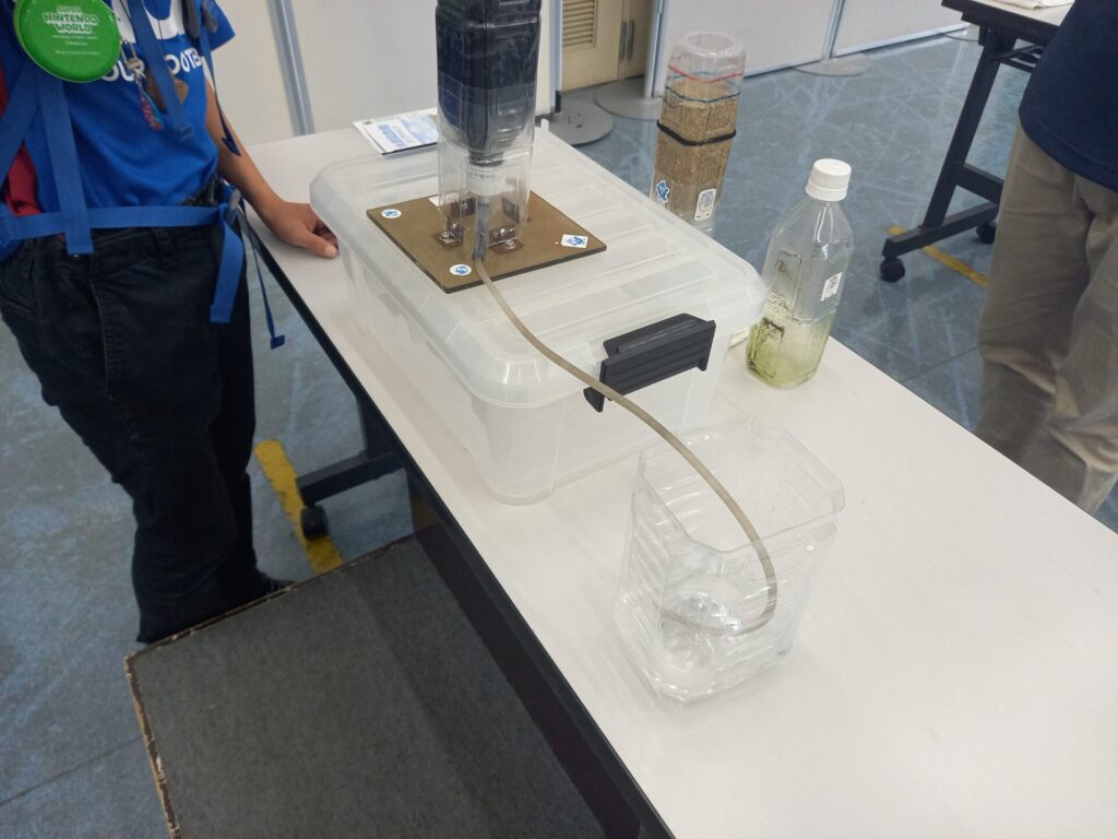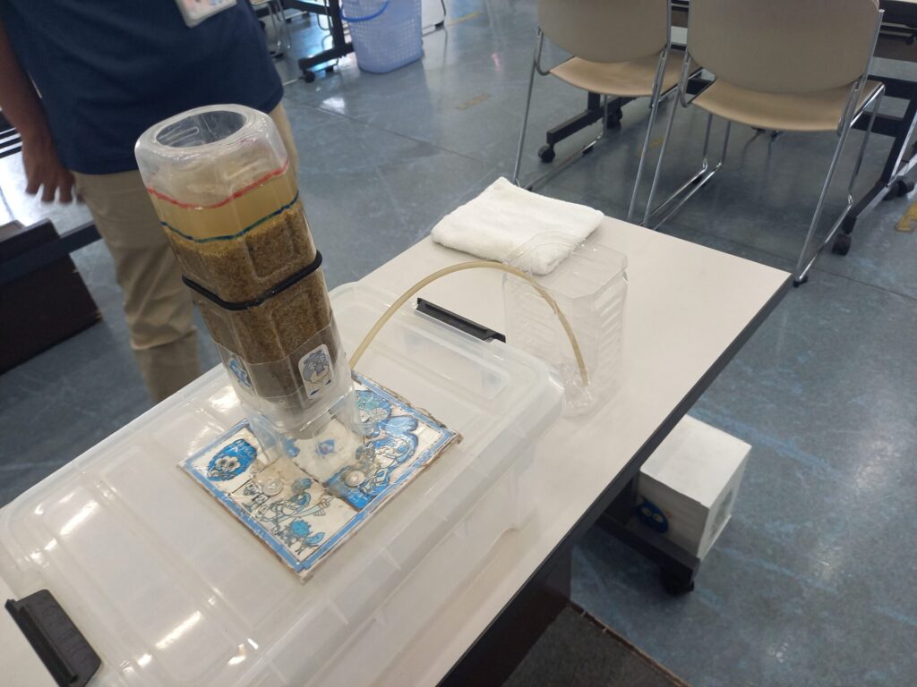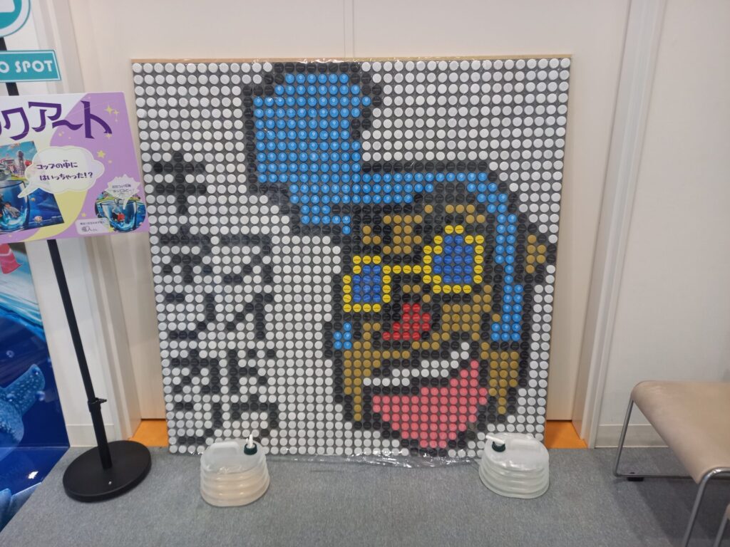 こちらは、ペットボトルの蓋で作ったじょう水ジョーが展示されていました!