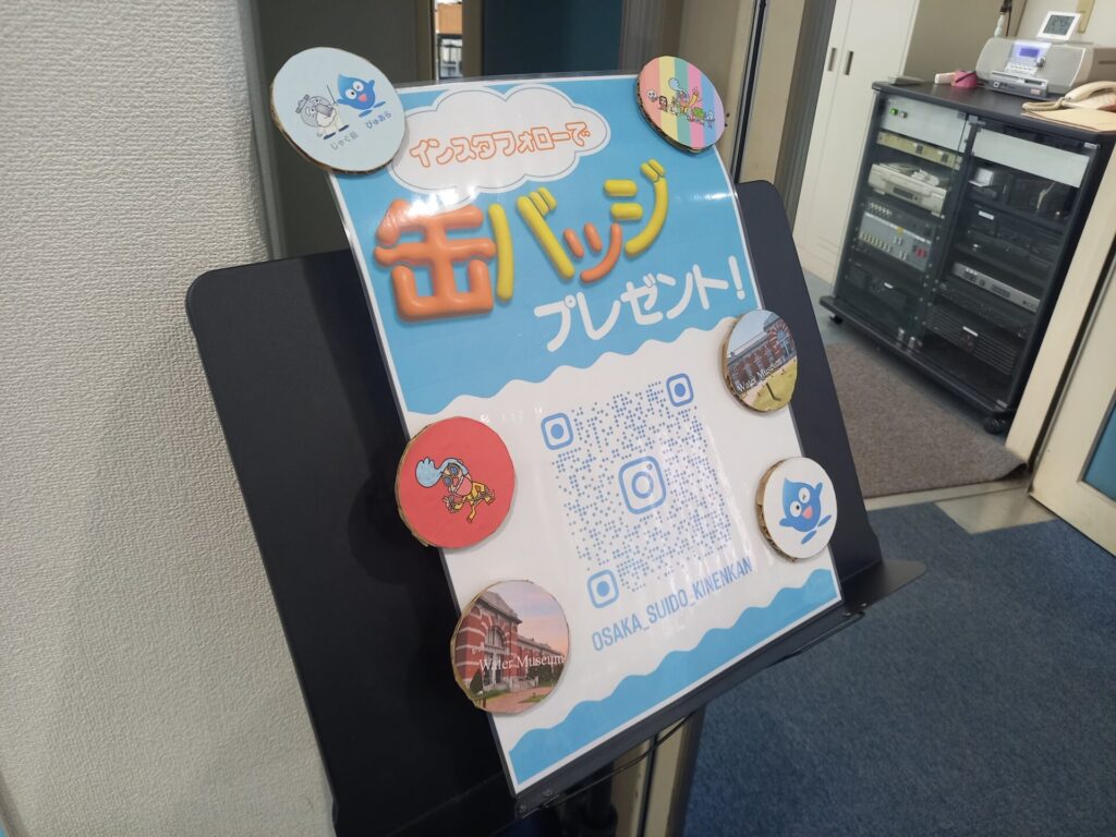 大阪市水道記念館インスタグラムアカウントをフォローすると缶バッチがもらえるということでその場でフォローして缶バッチをもらいました。